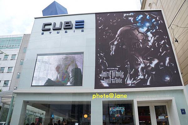 CUBE CAFE跟JYP好近喔,JYP外面有一間BEAST代言的甜甜圈店,也有貼著他們充滿夏日氣息的照片。