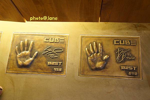 假日的關係加上BEAST的演唱會,所以CAFE裡面滿滿的人潮,連排隊點飲料都要等個十來分鐘。裡面還有展示CUBE旗下藝人的周邊商品,我點了一個類似蘇打水,藍色透明的,杯子外面是印著BTOB的照片,不過外牆上面已經換成BEAST的最新正規二輯專輯封面,連旁邊也撥上著Shadow的MV。