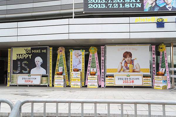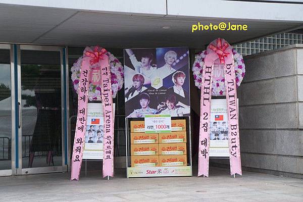 然後就會場外面逛一圈,都是韓國的花籃祝賀,每一成員的應援都很強大,我覺得真的很厲害,不只是韓國的,還有看到來自其他國家的祝賀。