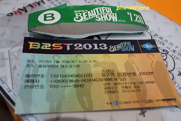 票根手環+票,韓國都是用手環辨識區域。而且我第一次看到票上面,竟然還有BEAST的背景,台灣賣的都沒有,真的是應該好好學習一下。