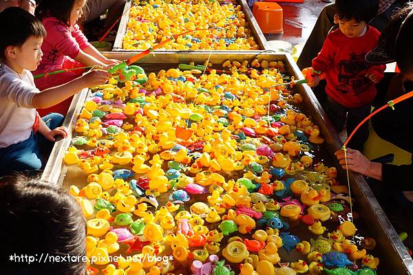 有一些小朋友可以玩的設施,當中我就看到了「釣小鴨」,池子裡面滿滿都是黃色小鴨,一般都是釣蝦、撈魚、釣烏龜,第一次看到釣小鴨。