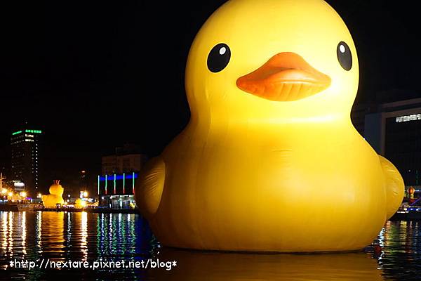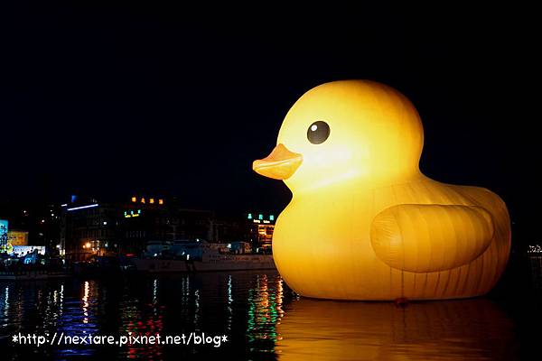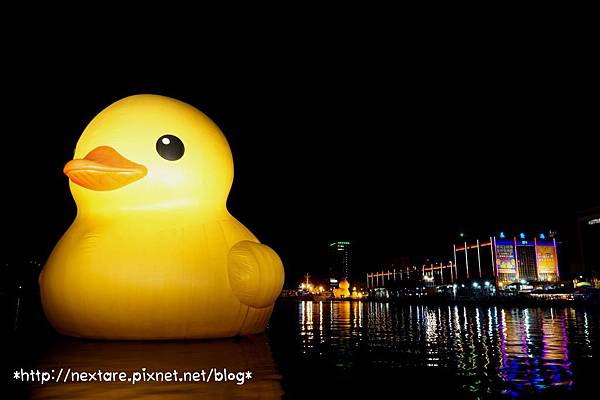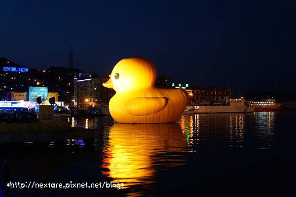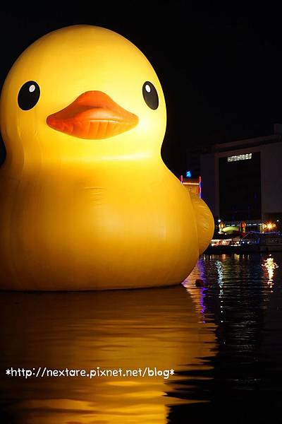 領完紅包之後,天也黑了,再度跑去看「晚上的黃色小鴨」。