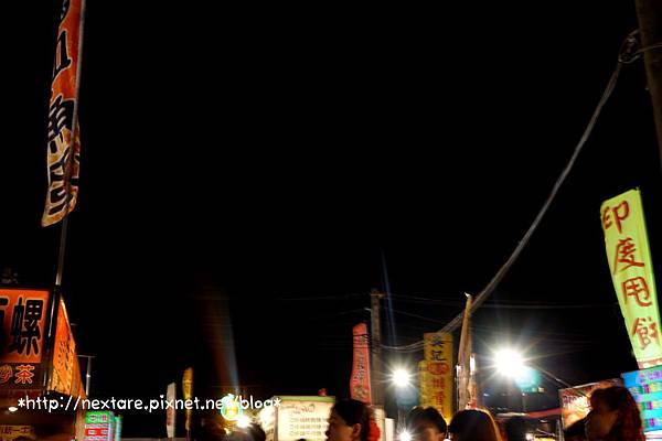 它的規模比花園夜市小一點,也是一條一條的,一邊是賣衣服或其他物品,一邊是賣吃的,也是一樣有一根一根的旗子在攤子上方。