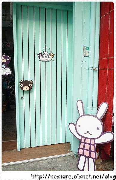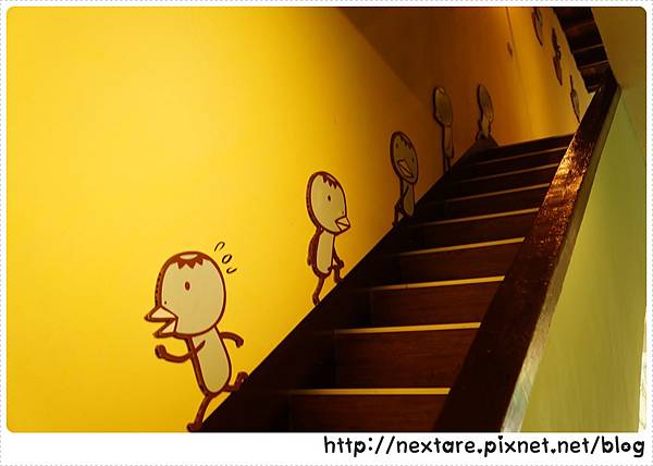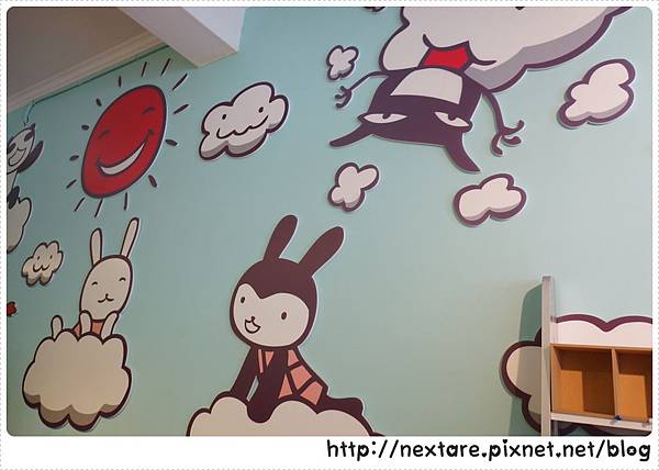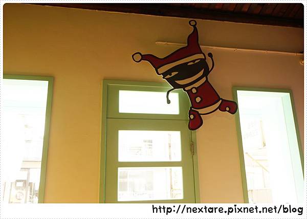 一走上二樓正前方是一個小陽台,不過現在已經禁止客人進出,在牆上有白兔妹及壞東西裝扮成聖誕節的樣子。