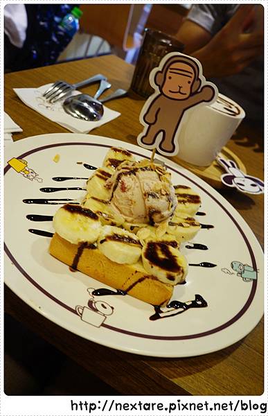 「猴哥的巧克力香蕉吐司佐香草冰淇淋」屬於較甜的味道,因為我們點了一甜一鹹剛好可以中和一下。香蕉味很重,冰淇淋加上吐司也很好吃。