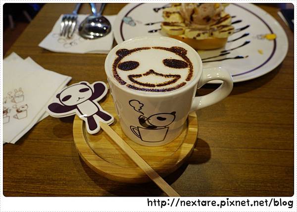 「熊貓哥的拿鐵咖啡」上面有熊貓哥拉花,連杯子上的圖案都是,味道也不錯喝,可以推薦一下。