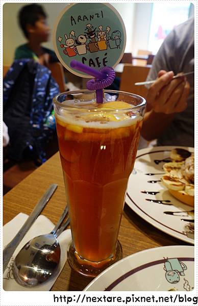 「水果冰茶」前面雖然沒有阿朗基成員的名字,附贈的小旗子是全員都出現的。雖然裡面的水果不多,不過整體喝起還不會太甜或太酸,還可以接受。