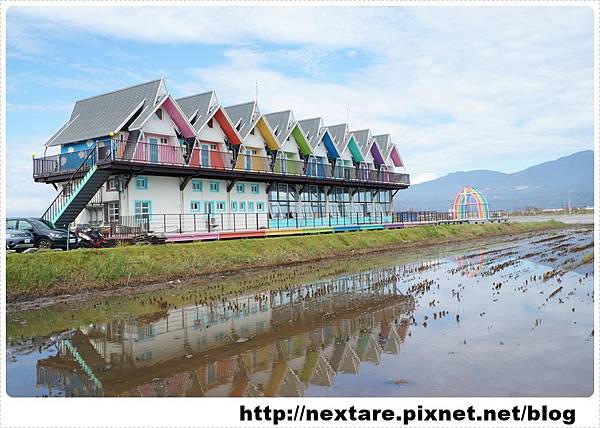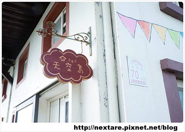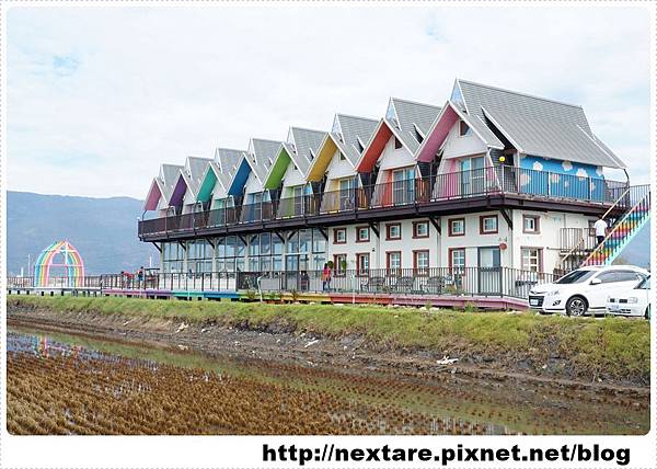 跟著導航走進田間小路,就會看到一棟很繽紛的房子就是今晚的落腳處「天空島上的小木屋」。